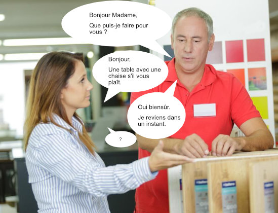 Donc je taillais des crayons tranquillement et soudainement, une cliente s’approche de moi. Et c’est après m’être remis de mon sursaut et avoir invoqué la protection du dieu Odin que je me suis adressé à elle.